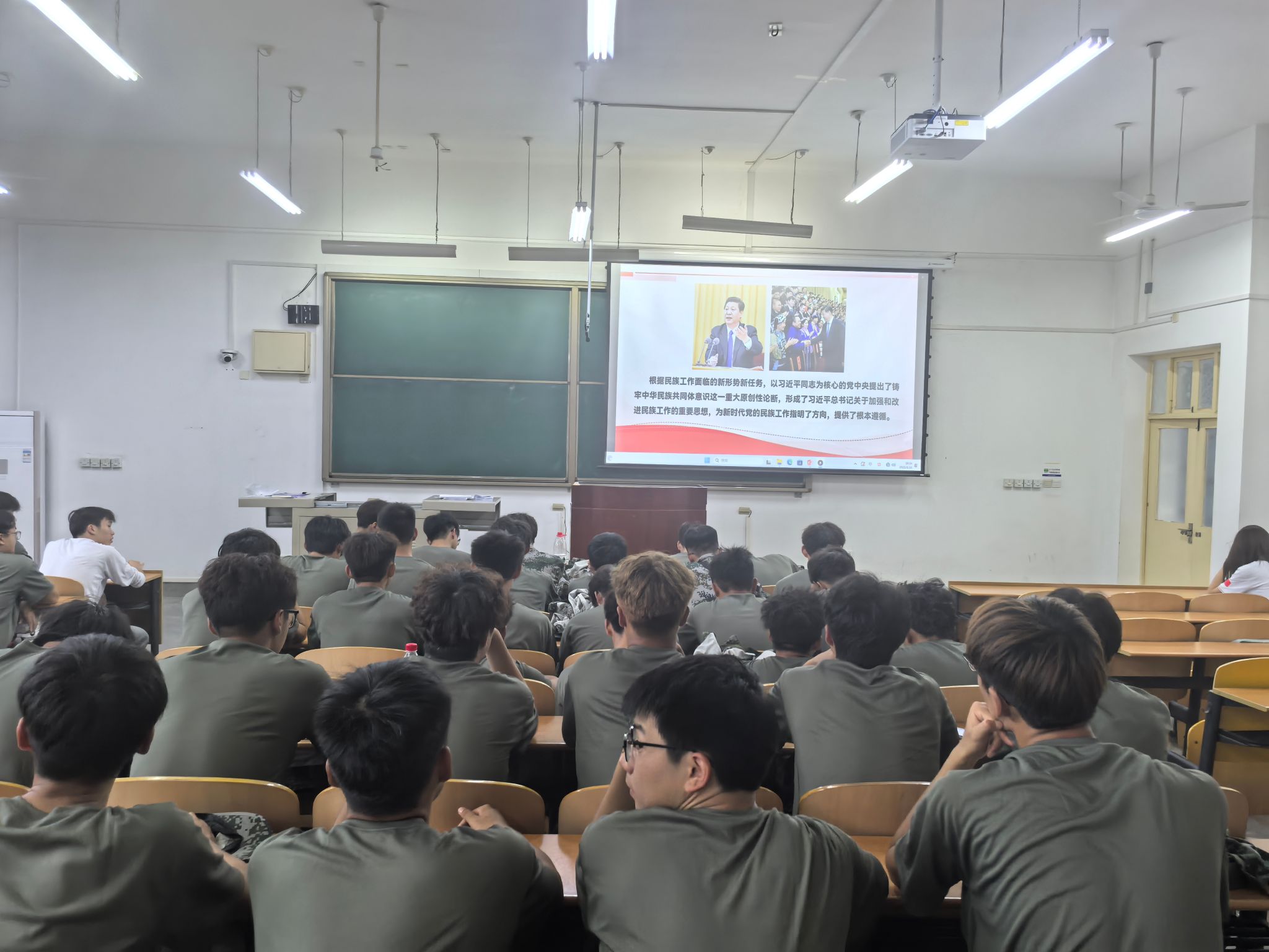 为深化“铸牢中华民族共同体意识”教育,根据军训课程安排,学院组织新生集中观看了《铸牢中华民族共同体意识的重大意义与任务要求》系列教育视频,并开展互动讨论。