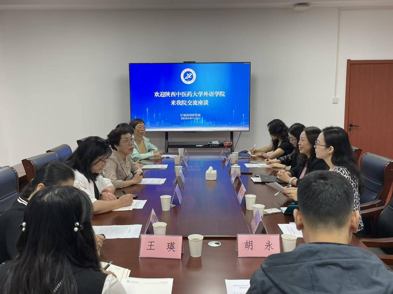 9月11日上午,陕西中医药大学外语学院院长欧阳静一行8人来我院调研交流。交流座谈会在雁塔校区华油能源楼F303A举行,区域国别研究院执行院长刘辉、研究院教师以及办公室相关人员参加会议。会议由区域国别研究院执行院长刘辉主持。