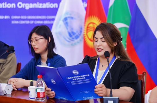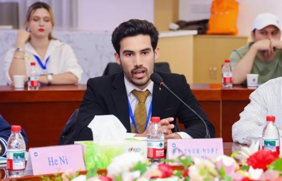 会议讨论环节,william代表围绕“青年如何参与上合组织地质学方面的合作创新”议题,与各方参与代表开展圆桌会议,学生代表菲鲁丝、黛西、萨莱分别作交流发言。菲鲁丝提出以教育科研、数字技术、国际协作三大路径推进青年地学合作;黛西聚焦“三个主动”,即主动利用机会、主动解决问题、主动跨域交流给出实践建议;萨莱则从责任使命切入,强调青年需将个人成长融入区域地学发展大局。最后,爱莲娜为会议宣读俄语版《青年地质科学家倡议书》。