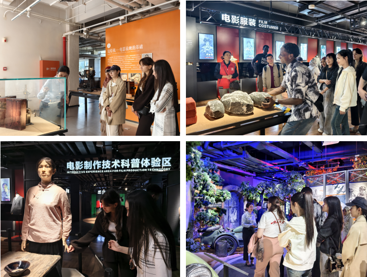 文化体验环节,西影厂讲解员首先结合生动的行业故事与珍贵的历史资料,向师生们系统梳理了西影厂60余年的发展脉络,深入解读了其背后承载的中国电影文化底蕴。随后,师生们走进西影电影博物馆,开启了一场中国电影 “时光印记” 的沉浸式探索之旅。在博物馆内的各个特色展区,大家或驻足凝视经典影片的道具原件,感受光影背后的岁月温度;或仔细研读影视技术的变迁历程,探寻中国电影工业的发展足迹,在一步步的探寻与品味中,真切触摸到电影艺术的细节质感与独特魅力。