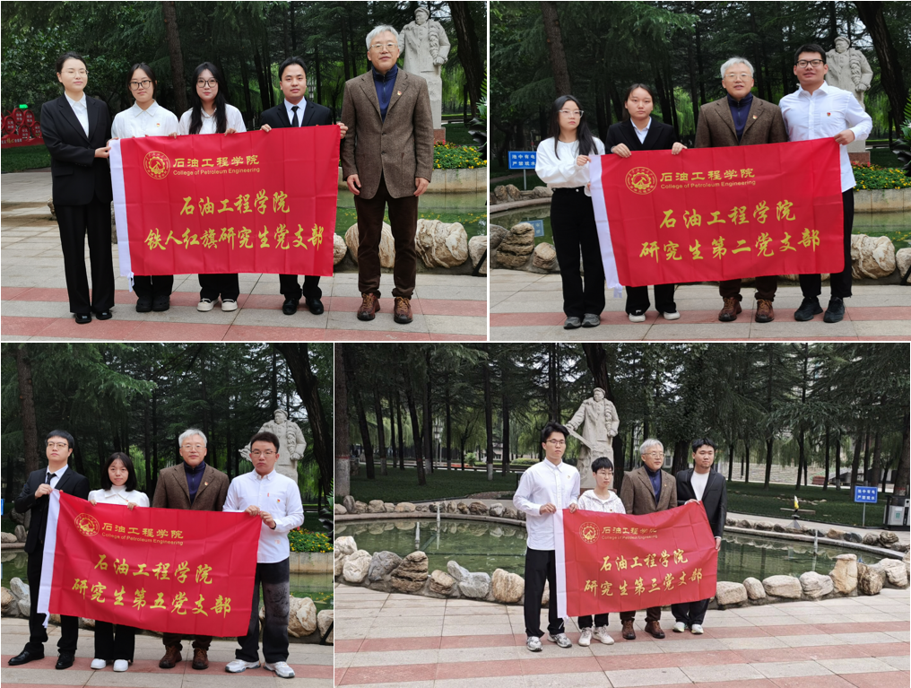 10月8日上午,石油工程学院于雁塔校区铁人广场开展纪念铁人王进喜诞辰102周年主题党日活动,石油工程学院党委书记司马文龙、学院研究生辅导员宋兴淼和研究生党员代表六十余人参加活动。