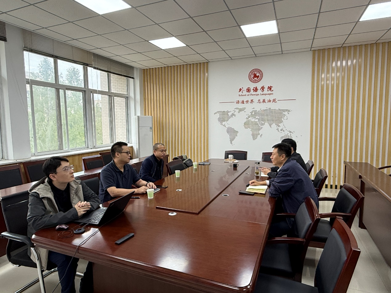 陈武副院长首先对林世宾总经理、西安公司总经理吴强一行的到访致以热烈欢迎,并结合学院办学特色简要介绍发展概况。他重点指出,学院长期聚焦“翻译 + 石油能源” 交叉领域,以培养贴合行业需求的高水平应用型翻译人才为核心目标,近年来在课程体系优化、实践平台搭建等方面积累了扎实基础。陈武副院长强调,双方可通过资源互补进一步提升学生的行业实战能力与岗位适配度,推动学院外语学科建设与石油行业发展需求深度绑定,为行业输送更多 “懂翻译、知能源” 的复合型人才。