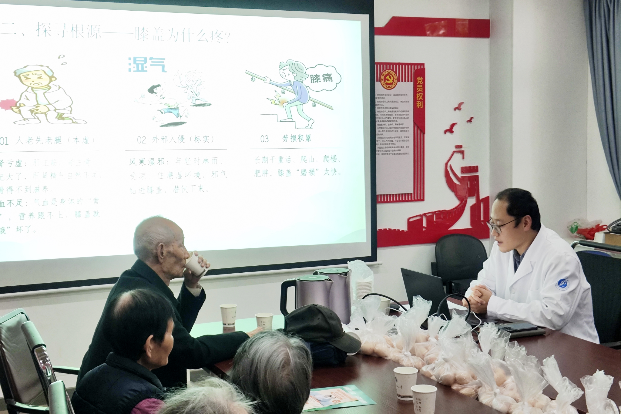 秋冬时节气温骤降,既是流感等传染病的高发期,也是关节炎、高血压等慢性病的易复发时段。针对这一健康痛点,校医院精心设计讲座内容,邀请两位医生从不同维度带来实用指导:赵利剑医生聚焦中老年人高发的关节炎,从中医辨证施治角度切入,不仅纠正了日常生活中常见的关节养护错误姿势,更提出“增加肌肉锻炼,不增加关节负荷”的科学理念,通过演示正确锻炼方法,手把手教大家如何保护双膝关节;洪艳萍医生则围绕秋冬季常见传染病,详细剖析高发原因与针对性预防措施,同时从饮食、作息、防护等方面引导大家养成良好生活方式,帮助老同志们科学防范传染病侵袭。