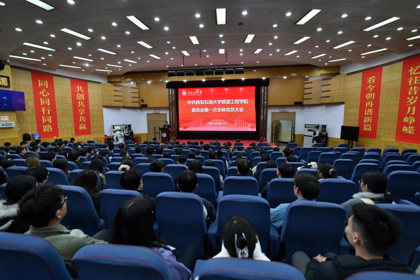 11月12日,管道工程学院党委在雁塔校区学术报告厅召开第一次全体党员大会,校党委委员、副校长张骁勇出席大会并讲话,校党委组织部部长高健磊到会指导。管道工程学院全体师生党员171人参会,大会由高亮同志主持。