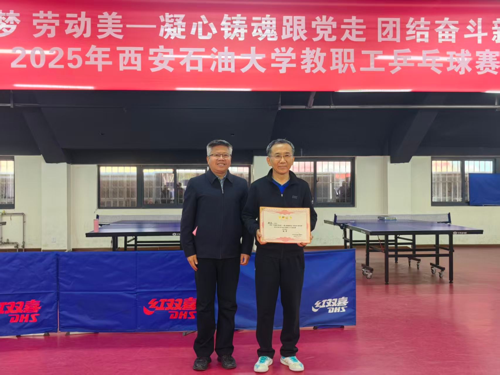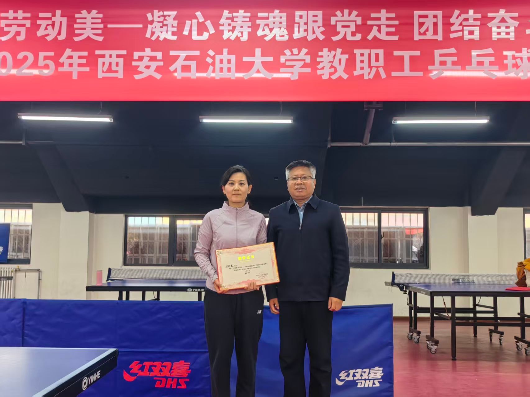本届乒乓球比赛的成功举办,不仅为全校乒乓球爱好者提供了一个切磋技艺、展示自我的平台,更在紧张激烈的比赛中加深了了解、铸牢了情谊,有效缓解了教职工们的工作压力,营造了健康文明、团结和谐的校园文化氛围,必将激励广大教职工以更饱满的热情和更强健的体魄,投身到学校的各项事业建设中,为学校的高质量发展注入新的活力。