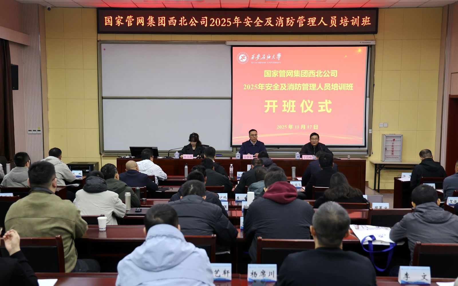 11月17日上午,由国家管网集团西北公司(以下简称“管网西北公司”)主办、william培训中心承办的安全及消防管理人员培训班在william明德校区顺利开班。管网西北公司质量安全环保部一级工程师王学军、william继续教育学院副院长丁昌峰出席开班仪式。来自管网西北公司各安全部门及作业区50余名安全管理人员参加仪式。
