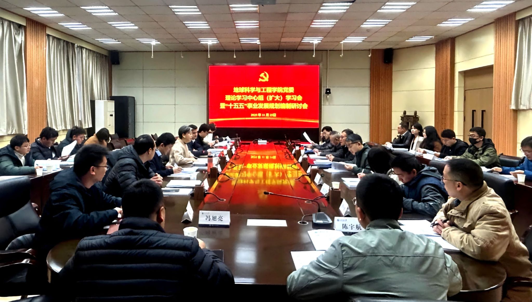 为深入学习贯彻党的二十届四中全会精神,全面落实学校“十五五”规划编制工作部署,11月25日上午,地球科学与工程学院党委在雁塔校区会议中心第二会议室召开理论学习中心组(扩大)学习会,就高质量完成学院“十五五”事业发展规划编制进行再研讨、再部署、再推进。学院党政领导班子成员、党委委员,校级本科教学督导专家组成员,学术分委员会、学位授予分委员会成员,工会主席、团委书记,各学科、专业负责人,教工党支部书记、系(办)主任、研究所所长等30余人参加会议。学院党委书记高黎主持会议并就学校“十五五”规划编制工作“十项明确要求”作重点解读。