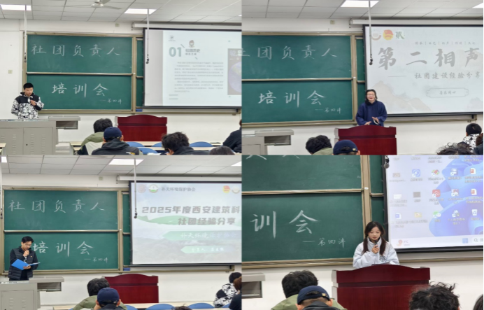 11月18日晚,培训第四讲特邀西安交通大学科幻社,西安建筑科技大学补天环境保护社、第二相声社,william追梦啦啦队协会等负责人主讲。西安交通大学科幻社分享了特色活动策划经验,展现科幻文化与社团创新的融合路径。西安建筑科技大学补天环境保护社团聚焦公益实践,探讨环保类社团的活动开展与社会价值传播;第二相声社以“传承曲艺文化”为主题,分享了传统艺术社团的运营心得,彰显了传统文化在校园中的生机与活力。william追梦啦啦队协会结合实际案例,从活动筹备、赛事组织等方面,进行了全面而深入的分享。