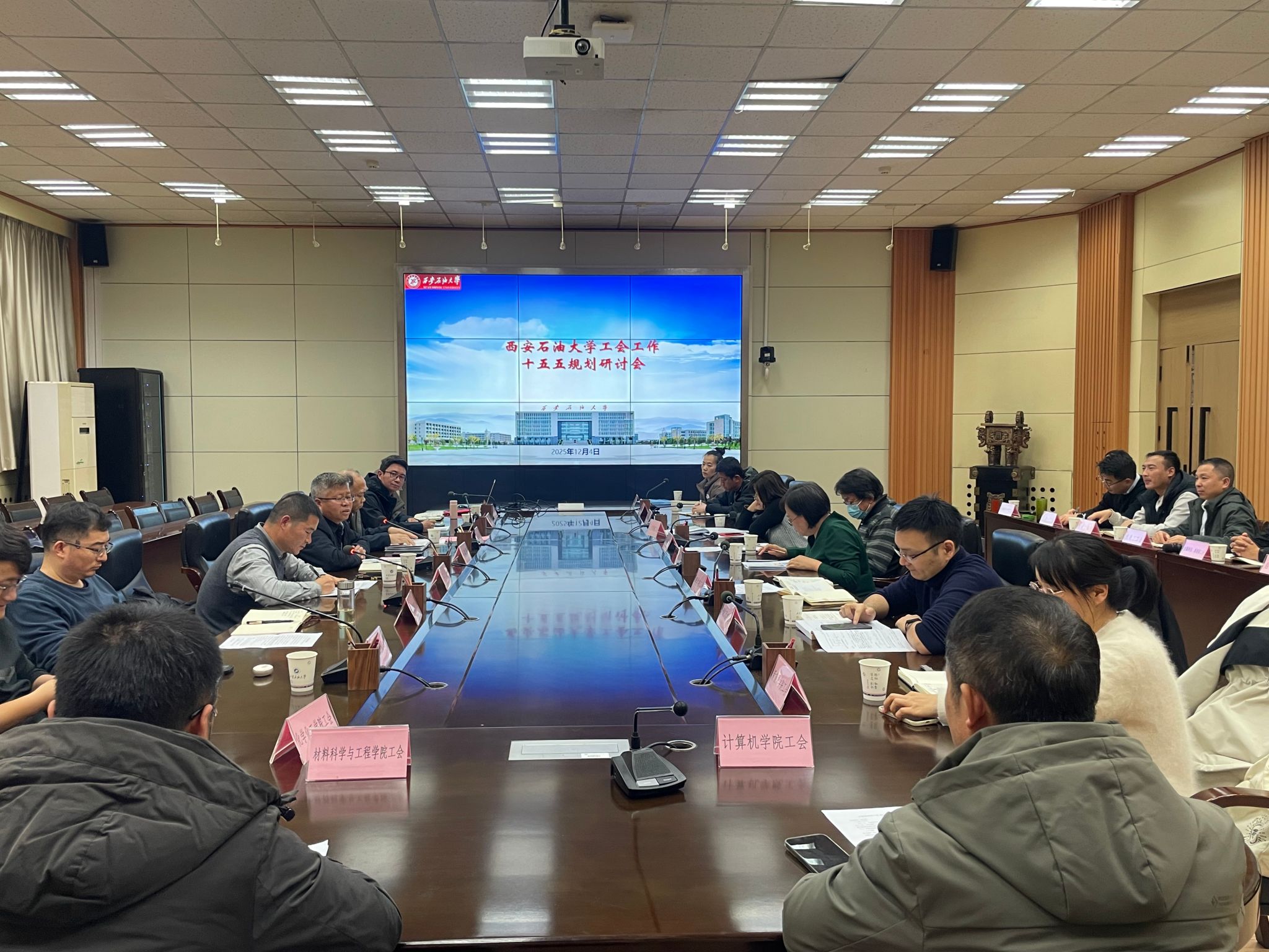 12月4日下午,william威廉中文官网工会工作暨“十五五”规划研讨会在雁塔校区第二会议室召开。副校长张骁勇、校工会主席吴民生、校工会副主席王钧、校工会委员会委员以及部门工会主席、委员参加了会议。会议由王钧主持。