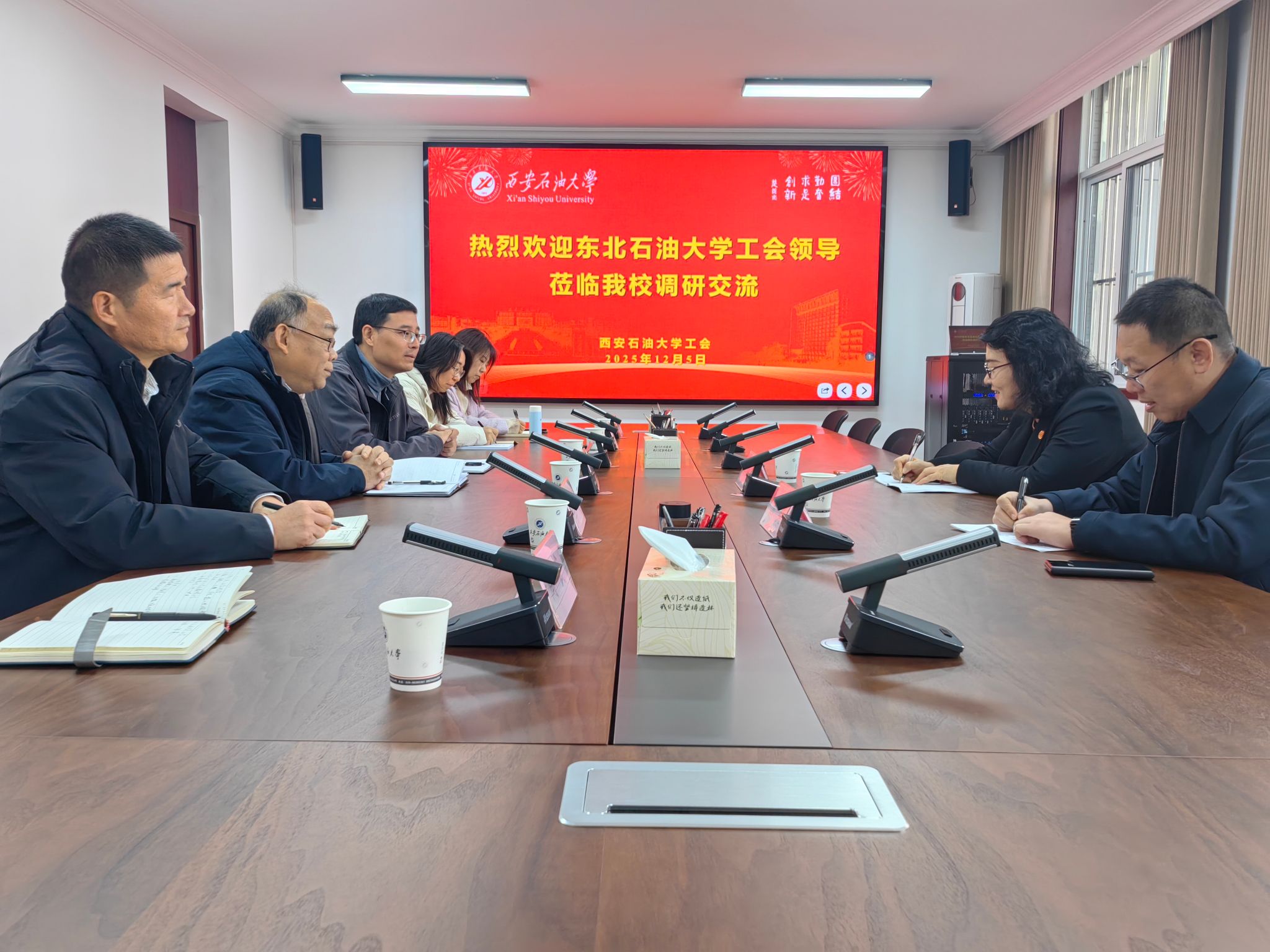12月5日上午,东北石油大学工会副主席(正处级)姜海燕、工会宣教文体部主任张昊一行来william交流座谈。william工会主席吴民生、音乐系党总支书记宋振涛、校工会副主席王钧及工会相关同志参加座谈。