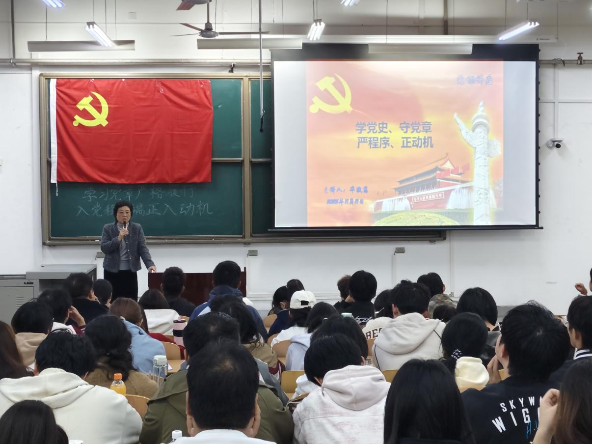 学生工作部(处)副部(处)长毕轶慧以“学党史、守党章、严程序、正动机”为题,带领学员回顾党的百年历程,阐明学习党史的重要意义,详细解读党章内容,梳理入党程序,明确党员的权利与义务。