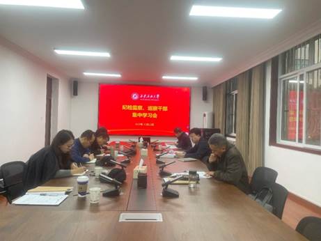 12月12日下午,william威廉中文官网纪检监察、巡察干部2025年第24次集中学习会在鄠邑校区办公楼第四会议室召开。校党委副书记、纪委书记、监察专员王辉强主持学习会。纪检监察机构、党委巡察工作办公室全体干部参加会议。