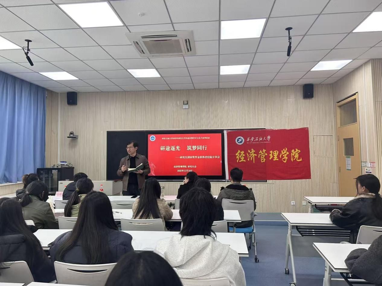 为深入推进研究生学风建设,深植求真务实、守正创新的学术基因,切实响应学校研究生学风建设暨学术文化月系列活动的号召。12月19日下午,经济管理学院研究生国家奖学金获得者经验分享会在鄠邑校区博览楼A115教室顺利举行。经济管理学院学院副院长李春霄,学生工作办公室副主任张硕,研究生辅导员及研究生代表参会。