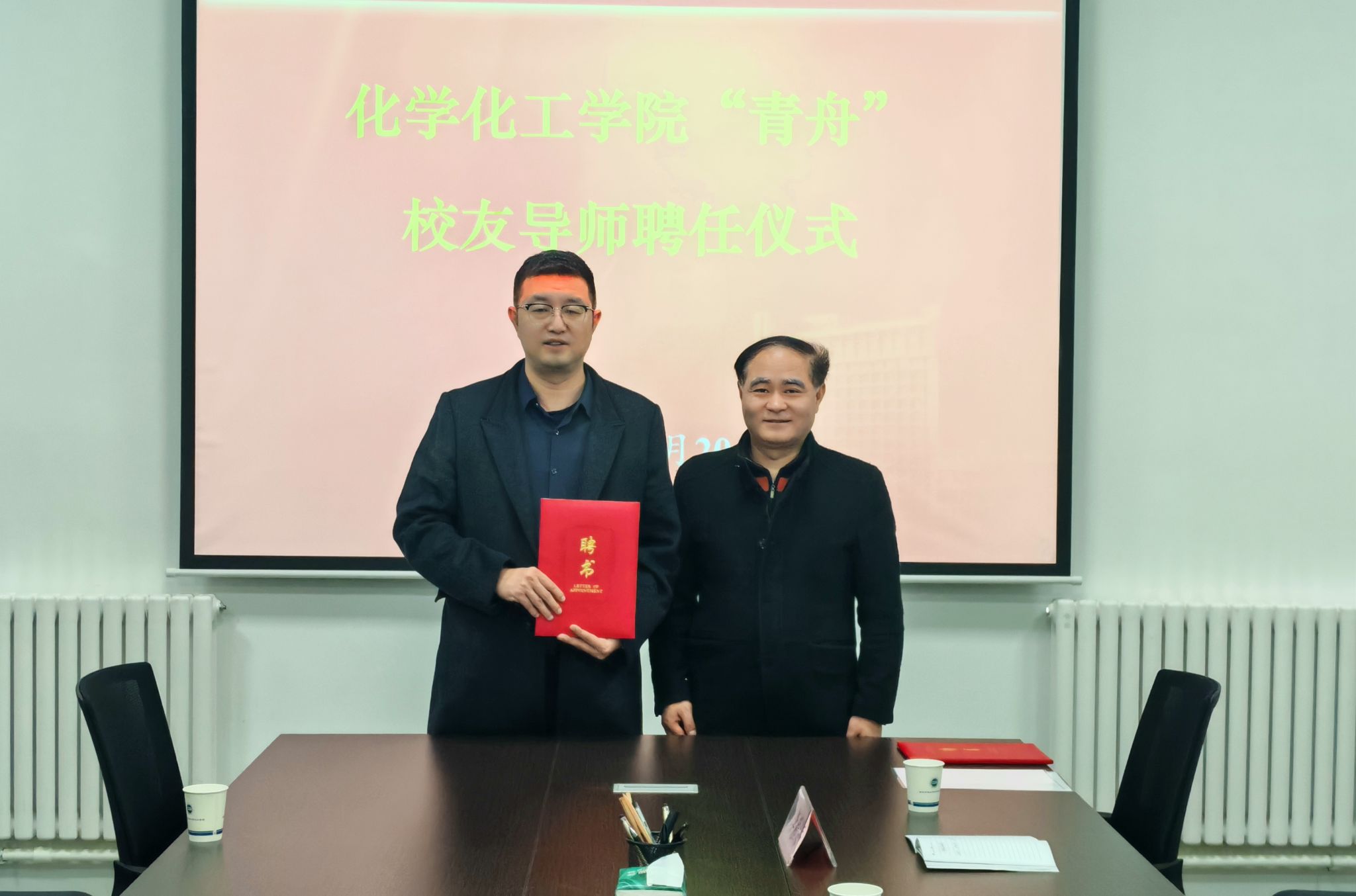 上午,学院党委书记孙会珠、副书记乔晓,在雁塔校区学院231会议室同两位校友进行了座谈交流,孙会珠向两位校友介绍了学院近几年的发展情况以及在科学研究、人才培养、队伍建设、合作交流等方面取得的成绩,并为两位校友颁发了“青舟”校友导师聘书。乔晓结合学院学生工作实际,介绍了实施“青舟”校友导师计划的目的和意义。随后,陪同校友参观了我院现代分析检测中心和Cape油气增产技术研究所,并就双方相关检验检测和技术服务方面开展合作进行了深入交流。