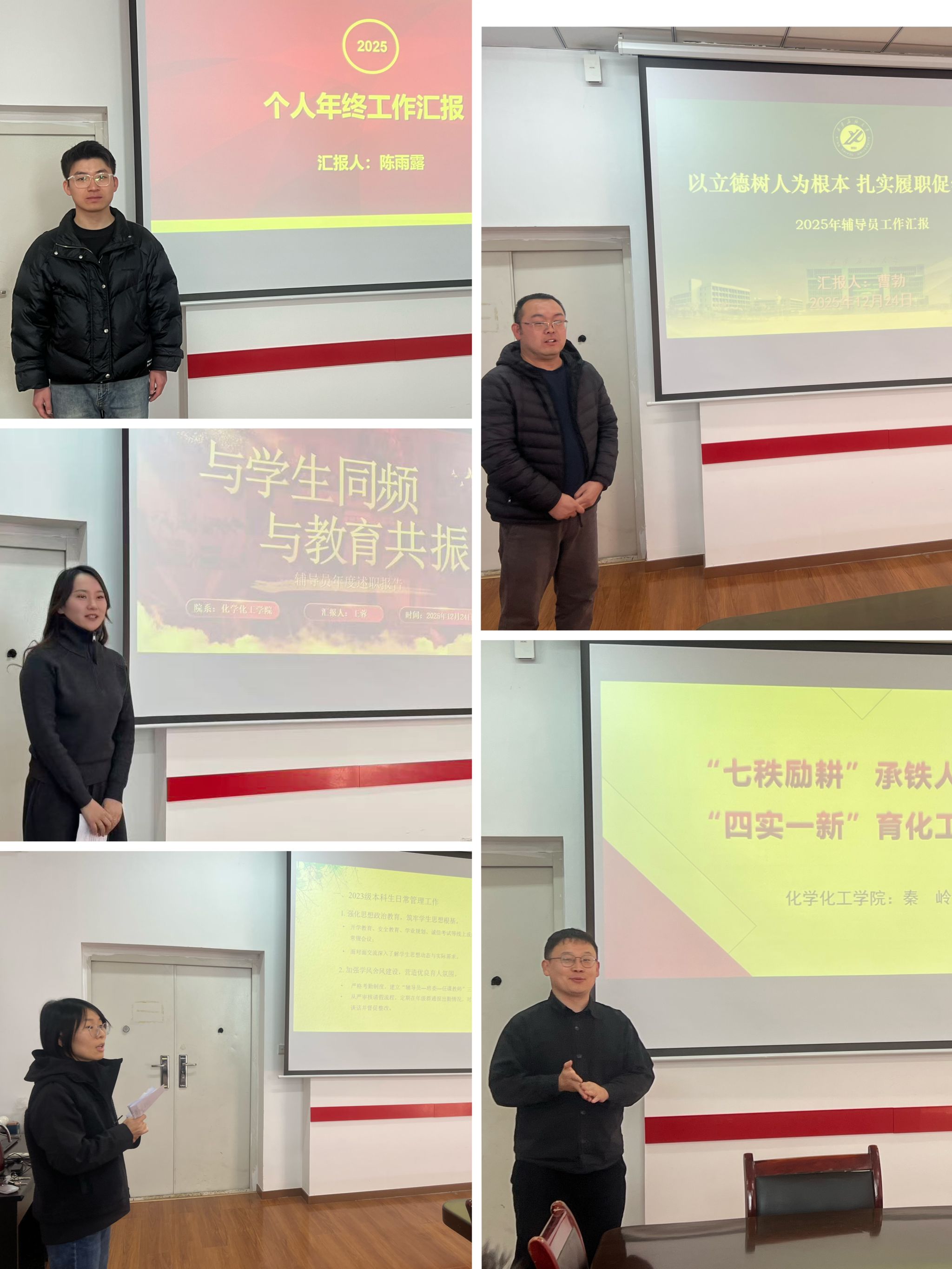 会上,学院全体专职辅导员围绕本年度履职情况,依次进行现场述职。大家紧密结合所负责年级、专业的实际,聚焦思想价值引领、班风学风建设、日常事务管理、心理健康教育、职业规划指导、危机事件应对及个人专业化成长等方面,通过详实的数据、生动的案例、深刻的反思,全面梳理了工作实绩,坦诚剖析了存在的问题与不足,并明确了未来努力方向与改进措施。述职不仅展现了辅导员们恪尽职守、倾情奉献的工作状态,更折射出学院学生工作队伍在落实立德树人根本任务过程中的思考深度与实践温度。