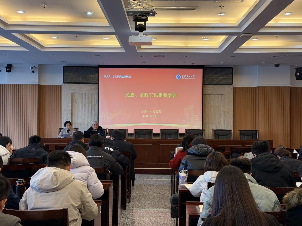 本次培训内容贴合学生工作实际,为学工干部开展相关工作提供了清晰指引。参训学工干部纷纷表示,通过本次培训,进一步深化了对民族宗教工作重要性的认识,明确了工作方向和实践方法。下一步,将把培训所学运用到实际工作中,切实提升工作质效,为学生健康成长和学校高质量发展贡献力量。作为william加强学工队伍专业化、职业化建设的重要载体,“铁人式”学工干部培训已连续开展多期,后续还将围绕学生思政教育、日常管理服务等重点工作,持续推出系列专题培训,助力学工干部提升履职能力。
