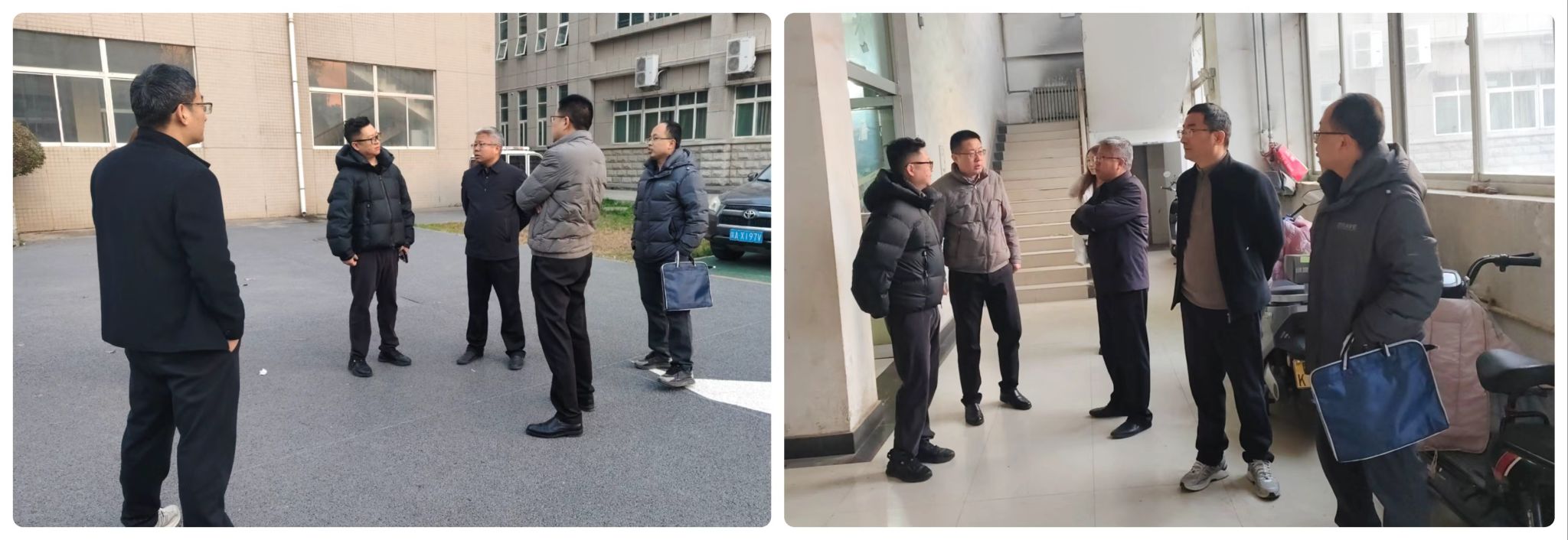 1月22日下午,副校长张骁勇带队到明德校区开展慰问活动,并现场调研指导假期工作,校工会负责人陪同慰问。并邀请william2010级校友、中明建投集团常务副总裁董斌一行现场考察餐厅改造提升工作并对接洽谈。