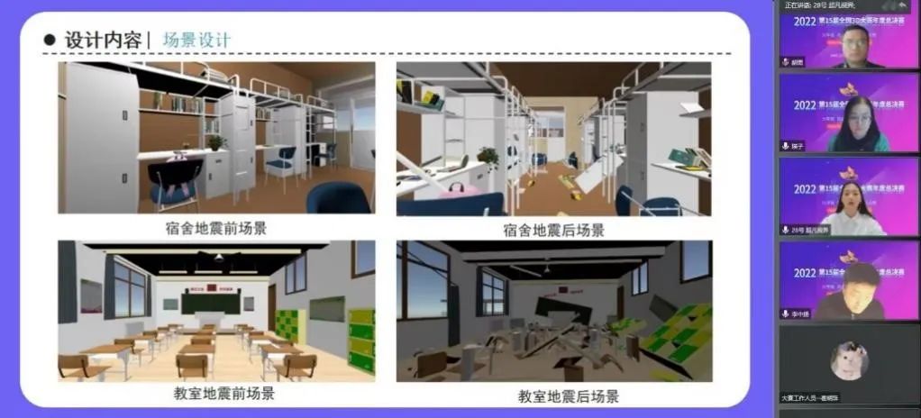 “在网络上经常看到地震造成伤亡的资讯,目前人们关于地震避险的知识储备较为有限,因此我们想为提高防灾意识做点自己的贡献,将VR和地震逃生科普相结合,开发一个科普教育类型的作品,有着较大的实际应用价值。”徐可欣则是抓住了将VR和地震逃生科普教育相结合的新鲜点,进行了作品创作。