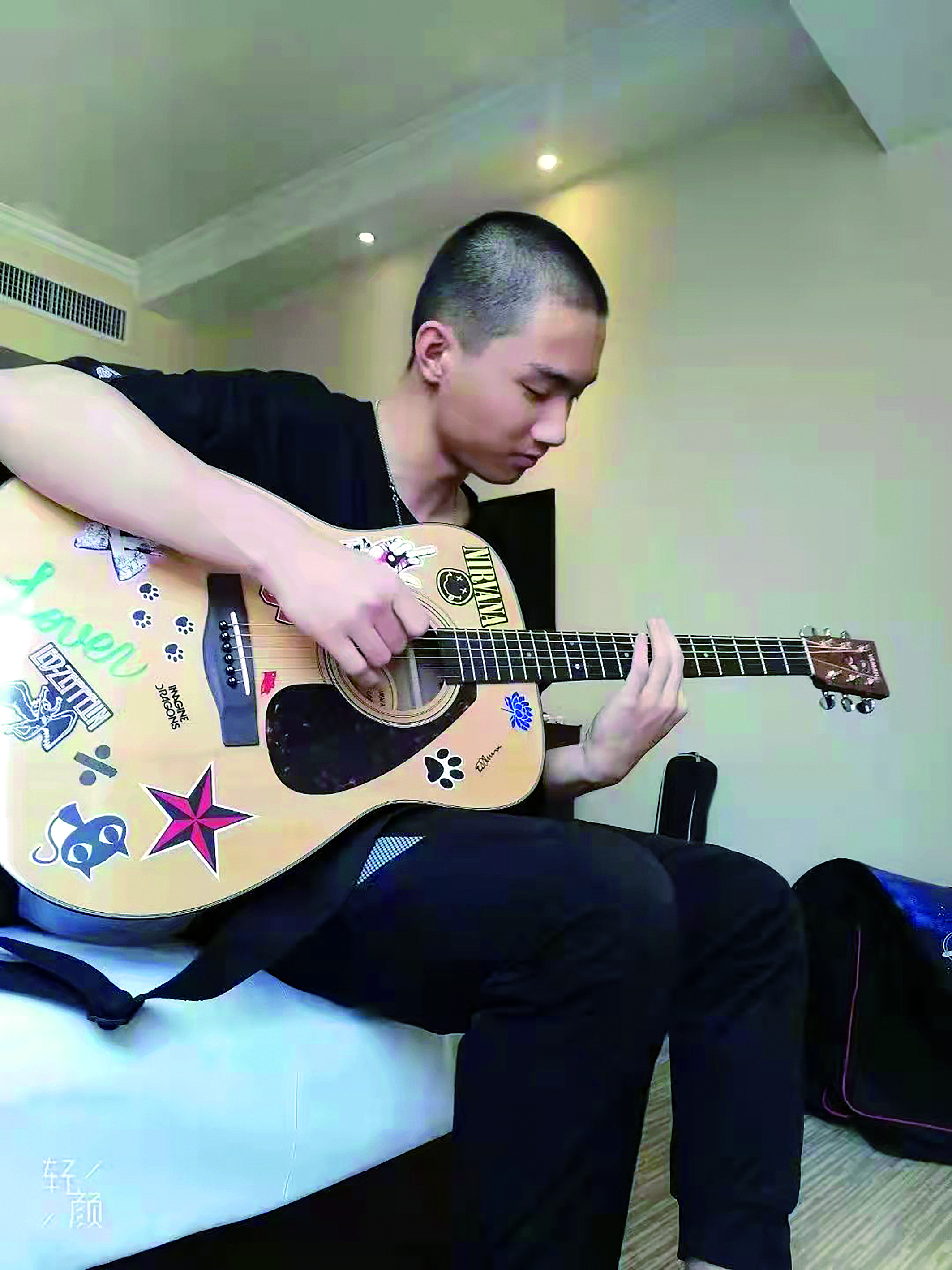 英语阅读也是郝哲宇的日常爱好。闲暇时,郝哲宇常常阅读大量外刊和英文小说,最近让他读得过瘾的是小说Lone Survivor(《孤独的幸存者》)。原版阅读使他积累了很多规范的英文表达,这与在视频资料中学会的口语表达是有区别的。这些累积,使他在英文写作时游刃有余。郝哲宇还喜欢音乐,弹吉他也是他业余爱好之一。他会在网上购买全英版的音乐资料书籍,徜徉在多元的音乐文化之中。