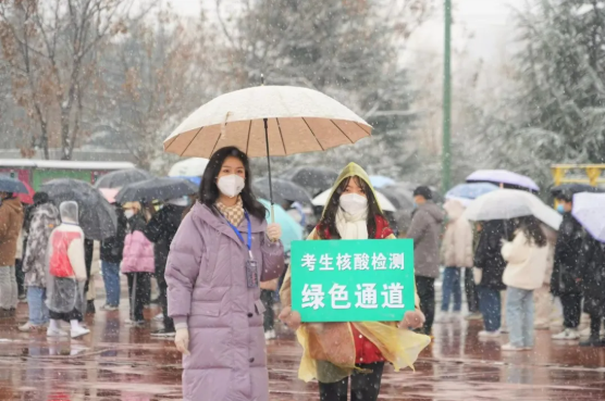 脱下的是军装,不变的是军魂。在全员核酸检测之初,王梓馨同学就与william退伍大学生一起,立下了请战书,投入到了核酸检测的一线工作之中,为同学们指引排队位置,协助医护人员进行“一码通”查验。每一次的全员核酸检测都有着他们的辛勤付出,在天刚蒙蒙亮的清晨,他们就必须动身前往操场,为马上要进行的核酸检测进行准备工作:搭桌子、摆设备、调试工具……在温度为零度以下的操场上,王梓馨和其他战友不畏严寒,身着防护服与医护人员一起,化身守护我们的“大白”。特别是在2022年全国硕士研究生招生考试中,王梓馨同学也是毅然加入到志愿服务第一线,冒着大雪引导考研同学和考务人员进行核酸检测,为考研学子保驾护航。