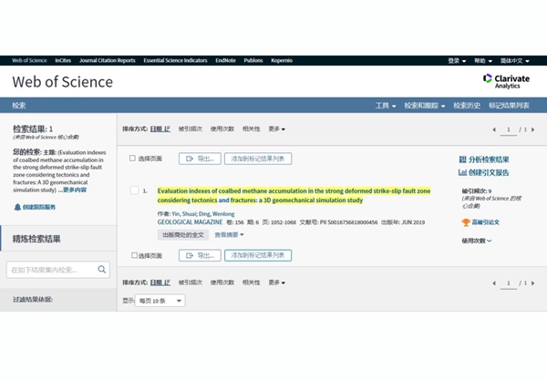 ESI高被引论文“走滑断裂带煤层气富机理”基于沁水盆地南部煤层气一直没有突破的现实困难, 尹帅从构造和裂缝角度分析了勘探潜力,对走滑断裂带的构造和裂缝对煤层气富集规律的影响进行了分析和探索,建立了相应的标准参数体系。虽然尹帅只是从理论上进行了探索和分析,但这一研究成果以其独特的视角和观点在国内外引起广泛的关注,被引次数排在相应学科领域全球前1%以内。