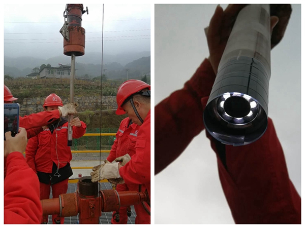 2018年10月底,西南威远某页岩气井发生新井套破事故,该井钻井费用超过6000万,发生套破后情况不明、责任不清,工程陷入停滞,钻井公司和甲方都非常着急。VideoLog团队再一次临危受命,严正娟、吕源立即赶到现场。该井井液为压井泥浆,不具备透光条件,套破产气,井控风险高,泥浆比重大,井底压力高,井深超过3000m,温度超过140℃,各项指标都在挑战VideoLog的极限。VideoLog团队迎难而上,通过和甲方、钻井公司、测井公司密切配合、协同作战,历时6天,上井3次,仪器下井8趟,终于在3574m-3575m发现套管严重破裂和变形,为甲方评价事故和分析原因提供可靠依据。该井创造了VideoLog的多项纪录。经过这次考验,团队的自信心和战斗力得到极大的增强。