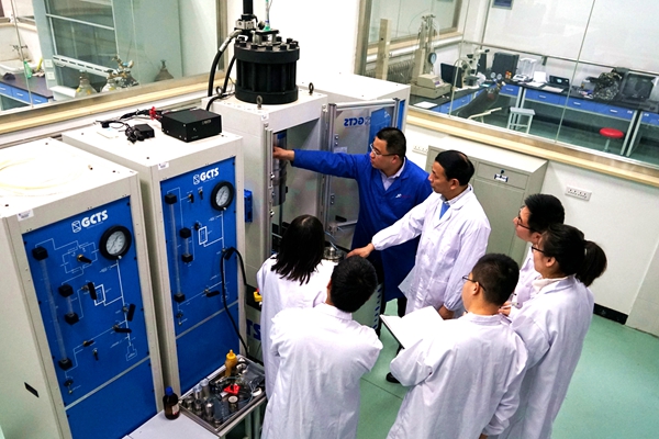 同时,实验中心在日常检测工作中,严格按照建立的体系文件运行并在运行中不断完善体系,形成质量记录并归档保存。2017年12月,中心在体系运行良好的状态下向“认可委”提交了认可申请书,“认可委”根据申请书提出了一些整改意见。2018年9月,“认可委”派出3名专家进校开展现场评审工作。经过两年的高质量运行和三轮严格评审,实验中心终于在2018年11月获得了认可资格。此次申请的岩石力学、油气田水质检测、石油产品质量、岩石物性参数、钻井液性能、腐蚀与防护、元素分析等7个领域的32个检测项目全部获得通过。