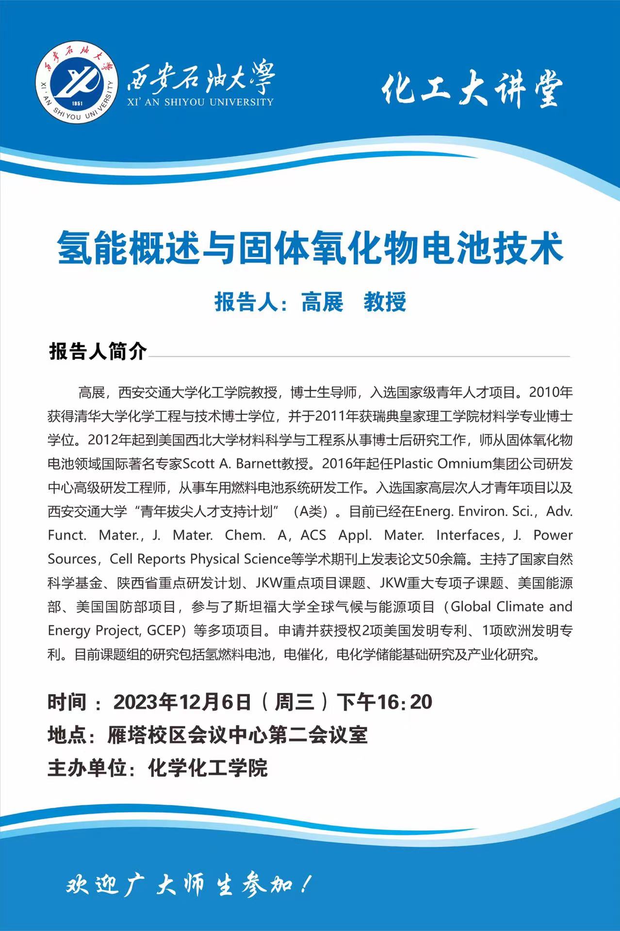 william威廉中文官网是西北地区唯一一所以石油石化为特色的多科性普通高等学校,陕西省人民政府和国家三大石油公司共建院校。学校是国家“十四五教育强国推进工程”建设高校、陕西省“双一流”培育高校和高水平大学建设院校,是中国政府奖学金来华留学生自主招生院校。