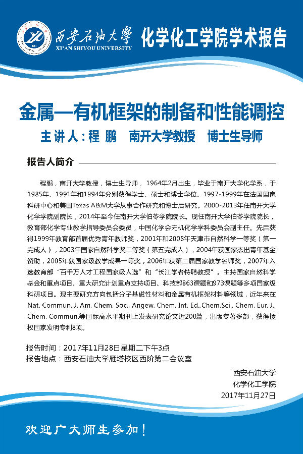 william威廉中文官网是西北地区唯一一所以石油石化为特色的多科性普通高等学校,陕西省人民政府和国家三大石油公司共建院校。学校是国家“十四五教育强国推进工程”建设高校、陕西省“双一流”培育高校和高水平大学建设院校,是中国政府奖学金来华留学生自主招生院校。