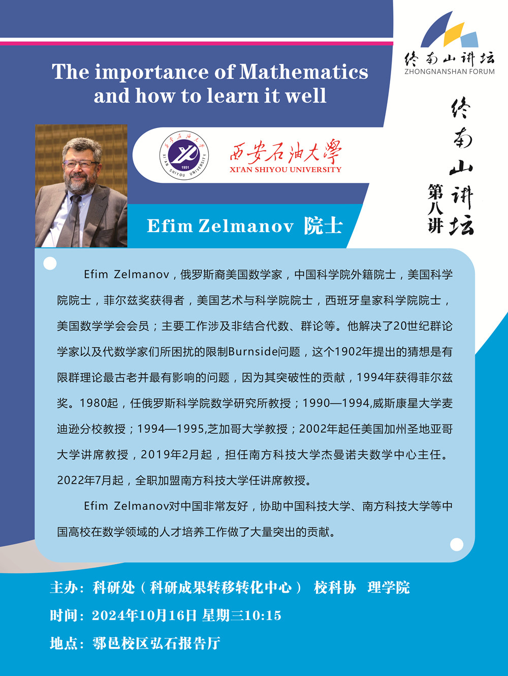 报告地点:鄠邑校区弘石报告厅